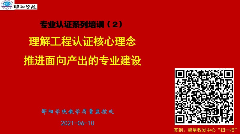 6月10日下午,教学质量监控处在七里坪校区艺术设计学院综合楼一楼报告厅举办了题为“理解工程认证核心理念,推进面向产出的专业建设”的专题培训。本期培训采用线上培训资源,主讲专家为中国工程教育认证协会学术委员会委员、中国工程教育认证协会结论审议委员会委员、中国工程教育认证协会化工制药类专业认证分委会副主任委员、华东理工大学院化工学院乐清华教授。