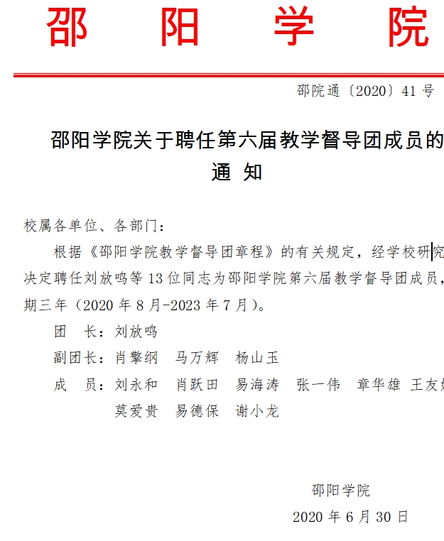 今年会官方网站关于聘任第六届教学督导团成员的通知