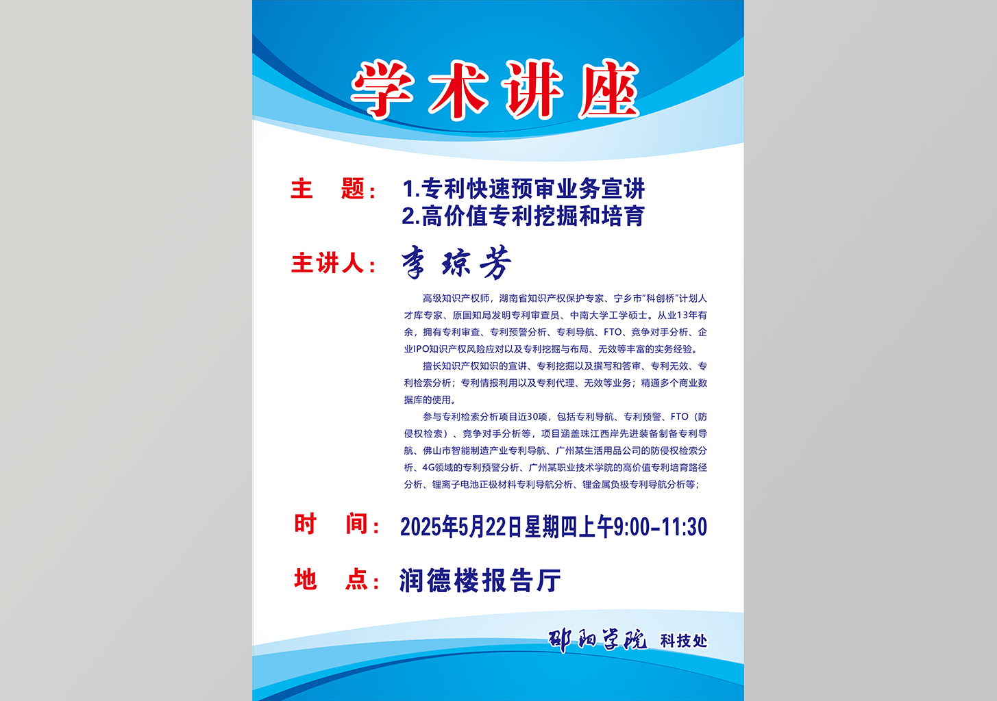 李琼芳:1.专利快速预审业务宣讲2.高价值专利挖掘和培育