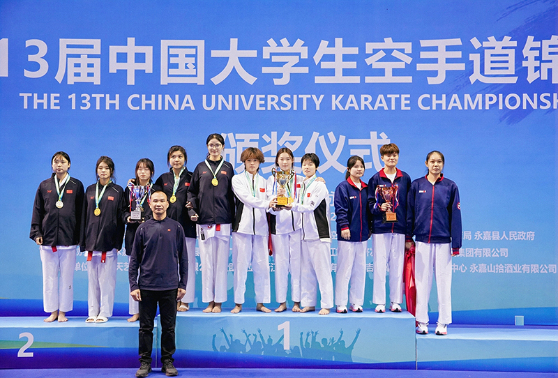 11月24日至11月28日,第13届中国大学生空手道锦比赛在浙江永嘉举行。今年会空手道队的队员们顽强拼搏、不畏强敌,最终斩获3金1银1铜及3个第五名的优异成绩,在参赛高校中名列前茅。