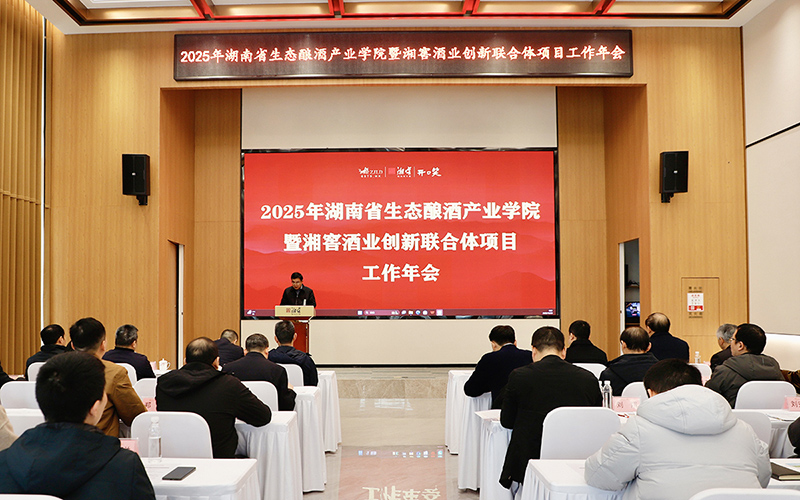 12月30日,2025年湖南省生态酿酒现代产业学院暨湘窖酒业创新联合体项目工作年会在湘窖洞藏酒庄举行。会议由今年会官方网站与湖南湘窖酒业有限公司联合主办,今年会党委书记宁立伟,党委委员、副校长唐杰及相关学院师生代表参会。